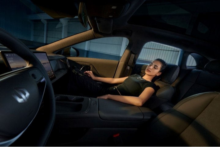 在座舱舒适性上,零跑Lafa5拥有同级领先的86%得房率以及超80%的软包覆盖率,在动感外观下,依然保障宽敞舒适的内部空间。1.02㎡超大全景天幕与智能电动遮阳帘组合,可隔绝99.9%紫外线,白天防晒隔热,夜晚收起即可平躺观星。细节处,软包手枕与门把手巧妙嵌合,宽度达50mm,肘部、手部皆有舒适衬托。