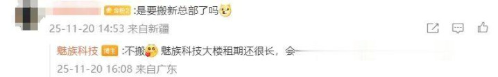 魅族科技官方回复称:“不搬,魅族科技大楼租期还很长,会一直陪着大家,追求源于热爱”