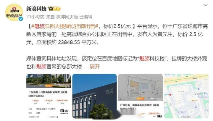查询具体地址发现,该定位在百度地图标记为“魅族科技楼”,挂牌的大楼外观也和魅族官网的总部大楼外观相符,只是没有了魅族 Logo 和字样。