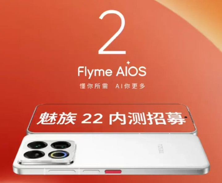 日前,魅族手机宣布魅族 22 手机开启 Flyme AIOS 2 内测招募。