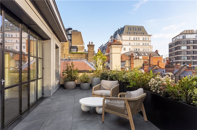 步入室内,空间延续“现代英伦”的设计脉络,以木质地板、天然大理石与哑光金属营造出沉稳而奢华的整体氛围。办公区域划分出开放协作格局,通透的金属网格大窗继承了所在街区的经典特征,也最大化引入自然光线;顶层设有专属屋顶露台,可俯瞰梅菲尔的建筑街景,承载各类高端宴会与奢华圈层活动,完美呈现英伦雅致生活方式。